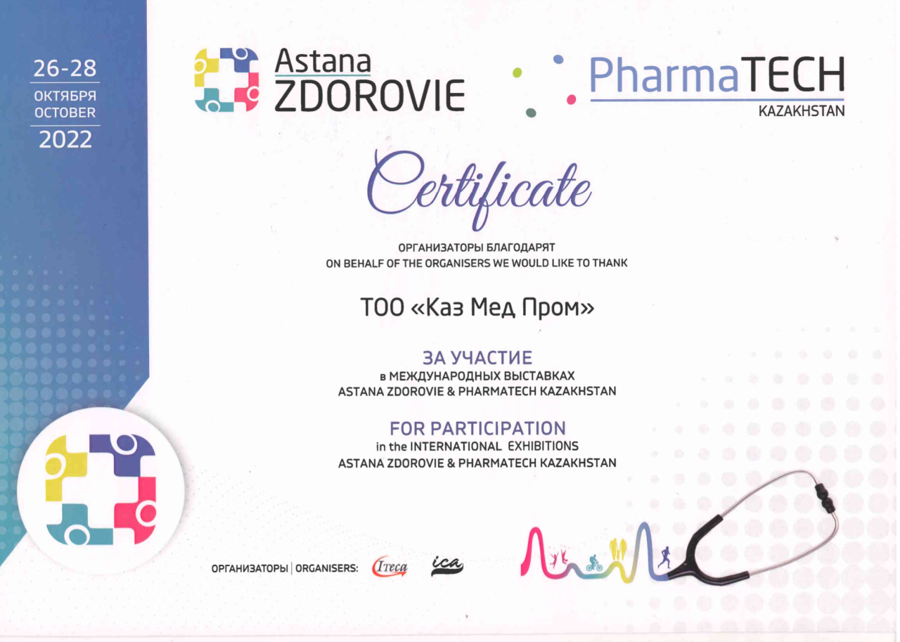 В октябре 2022 года мы приняли участие в международной выставке "Астана Здоровье"